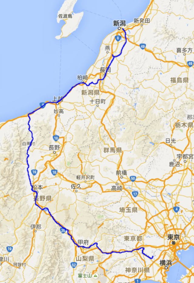 新潟-東三条-燕三条-東三条-長岡(長岡散策)-直江津(直江津散策)-糸魚川-南小谷-信濃大町-松本-大月-八王子-町田