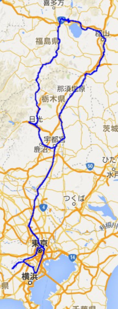 自宅から鬼怒川温泉までの写真