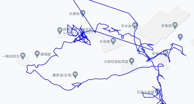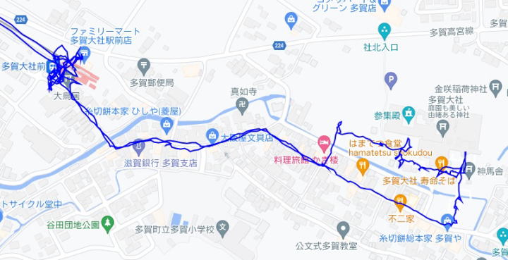 (多賀大社の散策。 GPSロガーのログデータで実際に移動した場所の軌跡を表示)