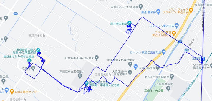 (五箇荘の散策。 GPSロガーのログデータで実際に移動した場所の軌跡を表示)