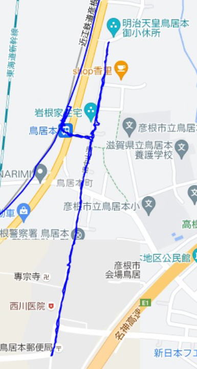 (鳥居本宿の散策。 GPSロガーのログデータで実際に移動した場所の軌跡を表示)