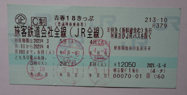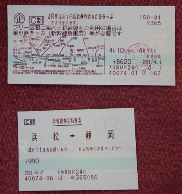 2021年春用の「青春18キップ」が2日分残っていたので、JR東海が発売している土日利用可能な「JR東海&16私鉄
