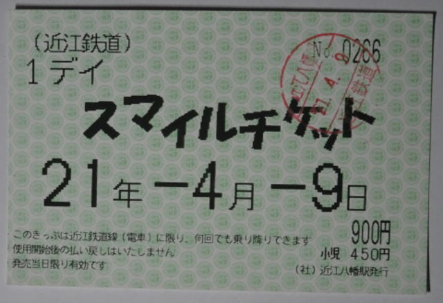 近江鉄道には金土日使える1日乗り放題のきっぷ「1デイスマイルチケット」を金曜日に使う事にした。
