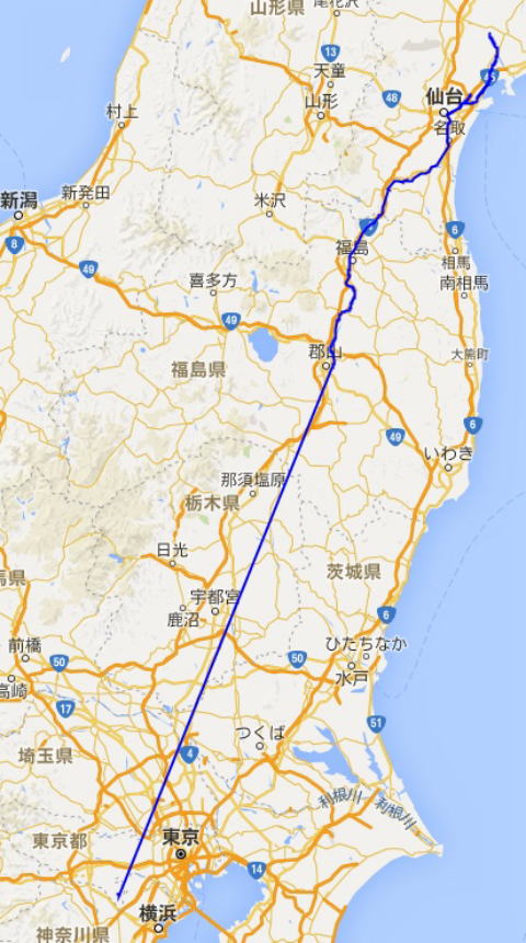 仙台-小牛田-岩切-利府-仙台-白石-福島(昼食)-郡山(時間調整)-新白河-黒磯-宇都宮-新宿-新百合ヶ丘-玉川学園前