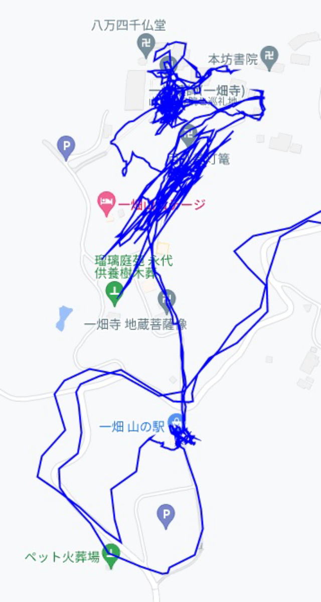 (一畑薬師の散策。 GPSロガーのログデータで実際に移動した場所の軌跡を表示)