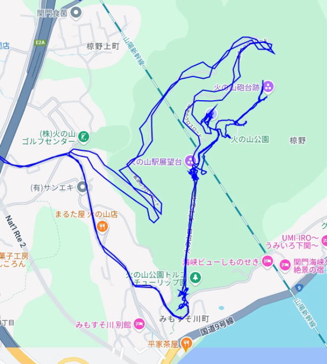 (火の山公園周辺の散策。 GPSロガーのログデータで実際に移動した場所の軌跡を表示)