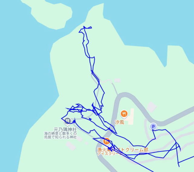 (元乃隅神社の散策。 GPSロガーのログデータで実際に移動した場所の軌跡を表示)
