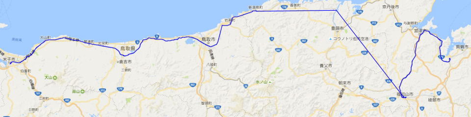 米子-鳥取-浜坂-城崎温泉-福知山(散策)-宮津-丹後由良(散策)-西舞鶴(泊)