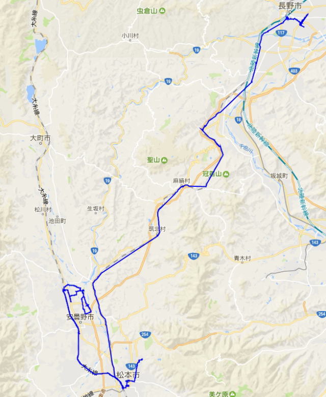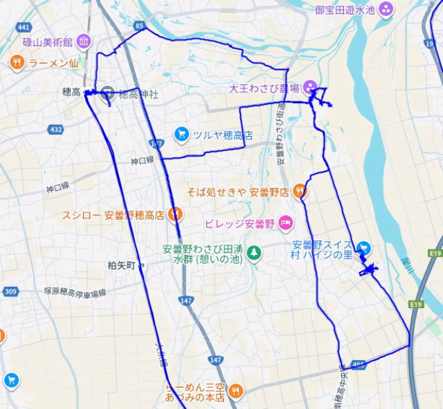 (安曇野の散策。 GPSロガーのログデータで実際に移動した場所の軌跡を表示)