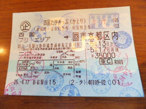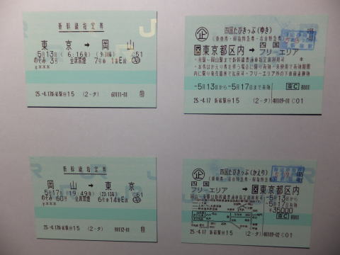 2013年5月13日(月)〜17日(金)までの5日間の旅行であったが、今回は「四国たびキップ」でフリーエリアとなっている四国の鉄道を